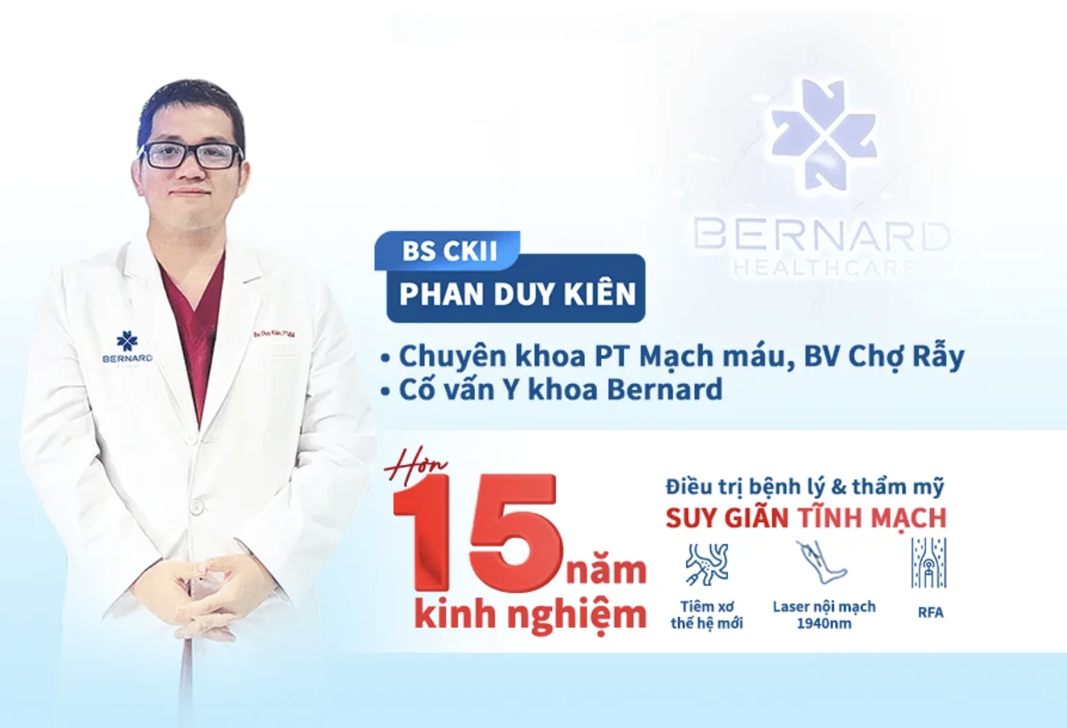 Từ ngày 05/9/2025, BS.CK2 Phan Duy Kiên tiếp nhận thăm khám và điều trị suy giãn tĩnh mạch duy nhất tại Bernard Healthcare, địa chỉ 22 Phan Đình Giót, phường Tân Sơn Hòa, TPHCM.