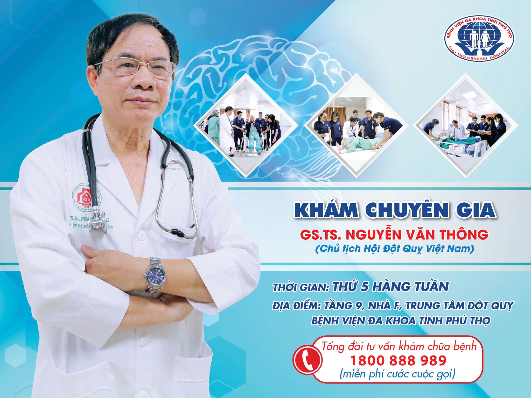Tôi nghe nói GS.TS Nguyễn Văn Thông - Chủ tịch Hội Đột quỵ Việt Nam có lịch thăm khám trực tiếp tại Bệnh viện Đa khoa tỉnh Phú Thọ. Gia đình tôi có người thân bị di chứng sau tai biến muốn được Giáo sư tư vấn hướng điều trị. Xin hỏi cụ thể lịch khám của bác sĩ vào ngày nào và làm sao để tôi có thể đặt lịch hẹn trước? (Đức Hải - Tuyên Quang)