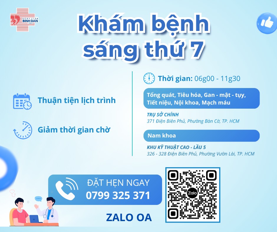 Bệnh viện Bình Dân có triển khai khám bệnh vào sáng thứ 7 để phục vụ những người bận rộn trong tuần. Cụ thể: