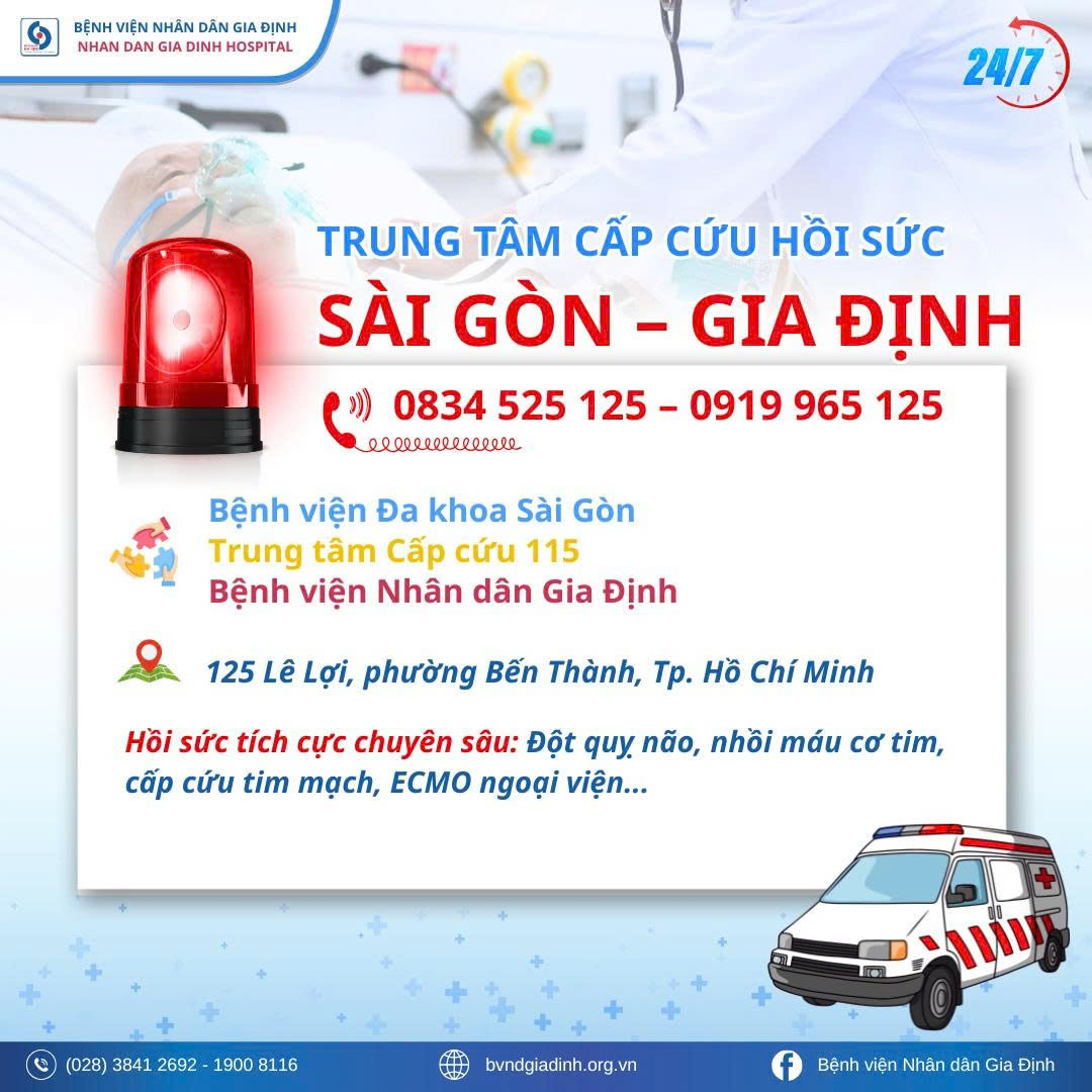 Khi cần cấp cứu, bạn hoặc người thân có thể gọi Trung tâm Cấp cứu Hồi sức Sài Gòn - Gia Định theo số: 0834 525 125 - 0919 965 125 (hoạt động 24/7).