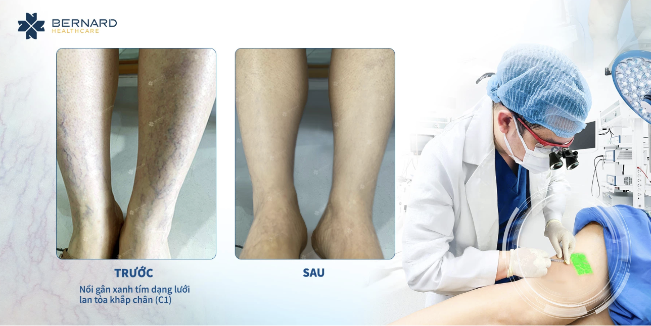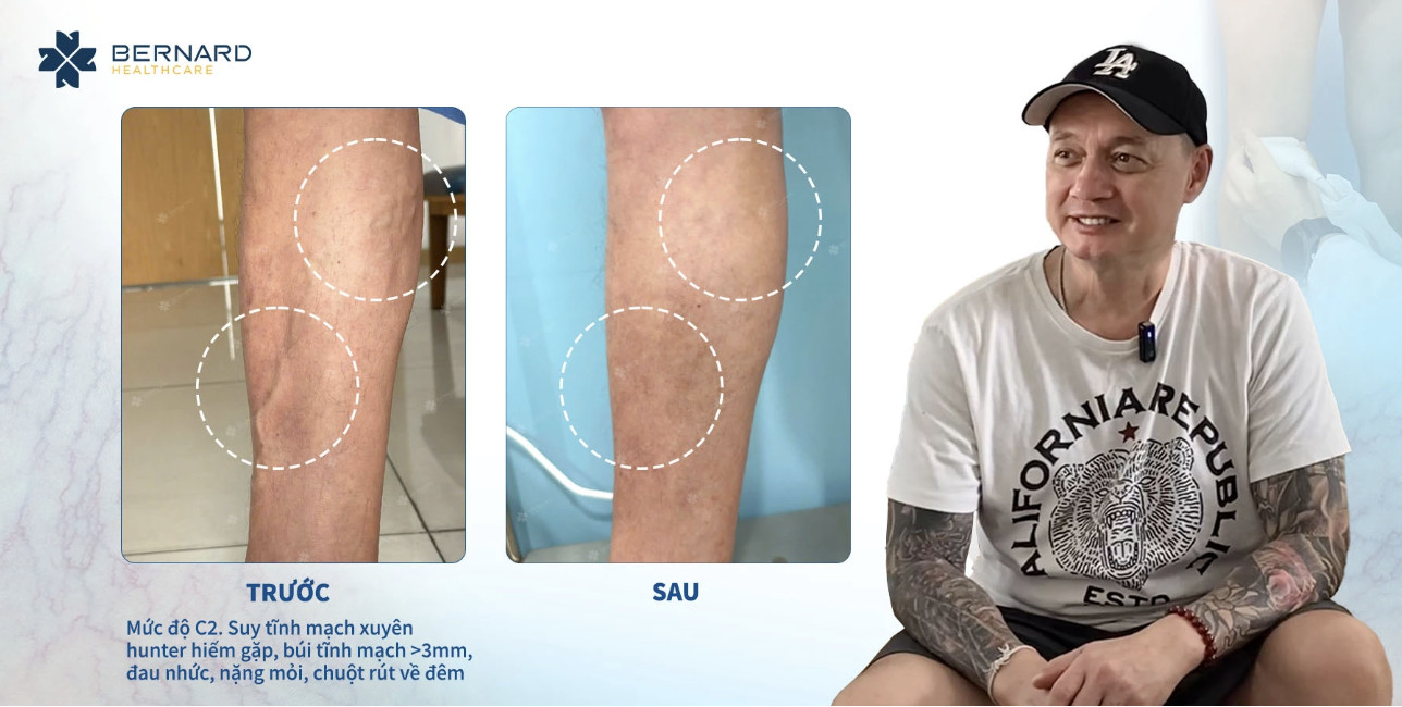 Chị T. - một Việt kiều Mỹ chia sẻ: “Tôi đã sống với tình trạng nổi gân xanh hai chân suốt nhiều năm, ngại mặc váy, đi lại cũng nặng nề. Ở Mỹ, chi phí điều trị quá cao nên tôi chỉ dùng vớ y khoa và thuốc bôi. Nhưng khi về thăm nhà, tôi tìm hiểu và quyết định điều trị tại Bernard. Sau 1 buổi tiêm xơ, chân tôi cải thiện rõ rệt - gân xanh mờ đi, cảm giác nhẹ hẳn”.