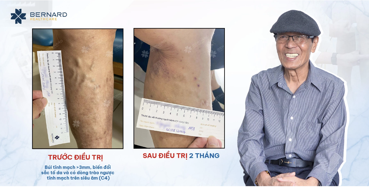 Tương tự, ông Phong (Việt kiều Mỹ) bị suy giãn tĩnh mạch nặng với búi gân nổi như chiếc đũa, đau nhức về đêm. Sau điều trị bằng laser nội mạch tại Bernard, các triệu chứng gần như biến mất. "Tôi thật sự bất ngờ vì chất lượng dịch vụ ở đây không thua gì Mỹ, nhưng chi phí lại tiết kiệm đáng kể" - ông Phong cho biết.