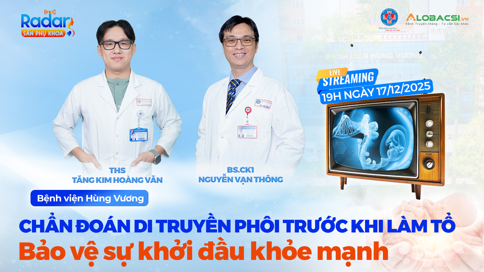 Chương trình được trực tiếp lúc 19h, Thứ Tư, ngày 17/12/2025 trên fanpage Bệnh viện Hùng Vương cùng hệ thống đa kênh của AloBacsi (YouTube/ website/ fanpage). Đừng bỏ lỡ cơ hội tương tác trực tiếp cùng chuyên gia để kịp thời trang bị kiến thức bảo vệ sức khỏe sinh sản!