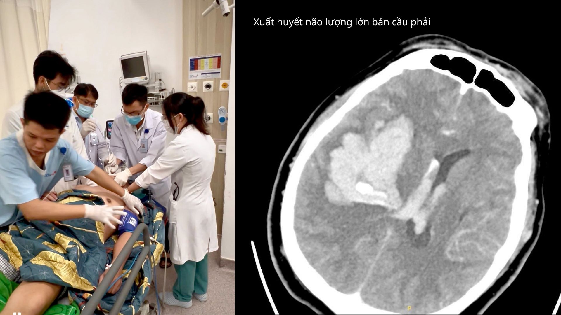 Khi ekip cấp cứu tiếp cận, bệnh nhân lơ mơ, chỉ đáp ứng đau, liệt hoàn toàn nửa người trái, mất ngôn ngữ. Huyết áp đo được ở mức cực kỳ nguy hiểm: 248/184 mmHg. Sau ổn định ban đầu, bệnh nhân được chuyển ngay đến bệnh viện chuyên khoa.