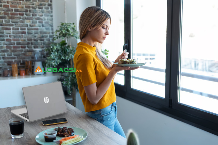 Đứng ăn thường xảy ra khi: ăn nhanh, vừa ăn vừa làm việc.
