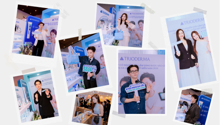 Góp mặt cùng các sản phẩm chủ lực, Trioderma tiếp tục mở rộng danh mục với các giải pháp chăm sóc da đáp ứng nhu cầu thực tế của người Việt, kết hợp cùng nền tảng khoa học thành phần an toàn và hiệu quả. Các sản phẩm như miếng dán mụn, mặt nạ dưỡng sáng chứa Niacinamide và Tranexamic Acid, hay mặt nạ dưỡng ẩm phục hồi với 8 loại Hyaluronic Acid và 6 peptide… đều nhận được sự quan tâm và đánh giá tích cực từ đội ngũ bác sĩ tham dự.