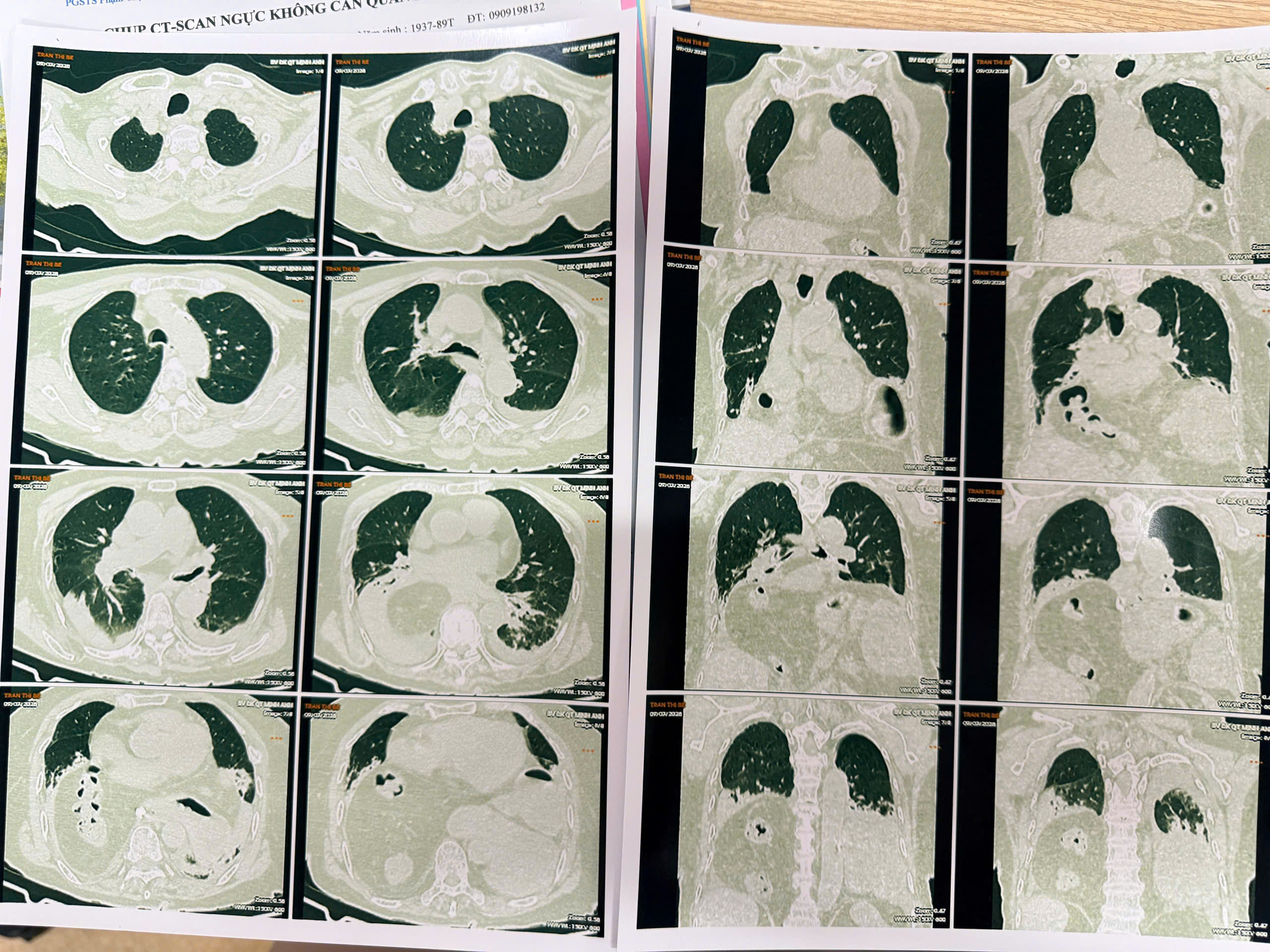 Kết quả thăm khám cho thấy toàn bộ dạ dày của cụ đã bị kéo giãn, lộn ngược và di chuyển hoàn toàn lên lồng ngực. Không chỉ vậy, mạc nối, mạc treo và đại tràng ngang cũng tràn lên, chiếm chỗ của phổi và tim, gây chèn ép nghiêm trọng.