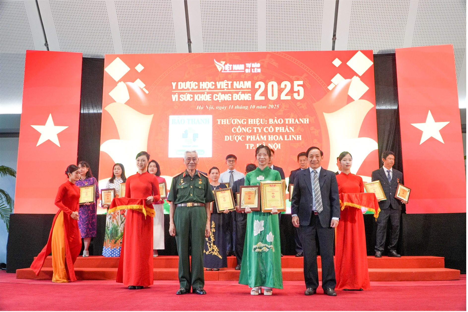 Tại Lễ công bố “Y Dược học Việt Nam vì sức khỏe cộng đồng 2025”, nhãn hàng Thuốc ho Bổ phế Bảo Thanh thuộc Công ty Cổ phần Dược phẩm Hoa Linh được vinh danh với Giải thưởng Lê Hữu Trác, cùng Chứng nhận “Vì sự nghiệp chăm sóc và bảo vệ sức khỏe nhân dân”.