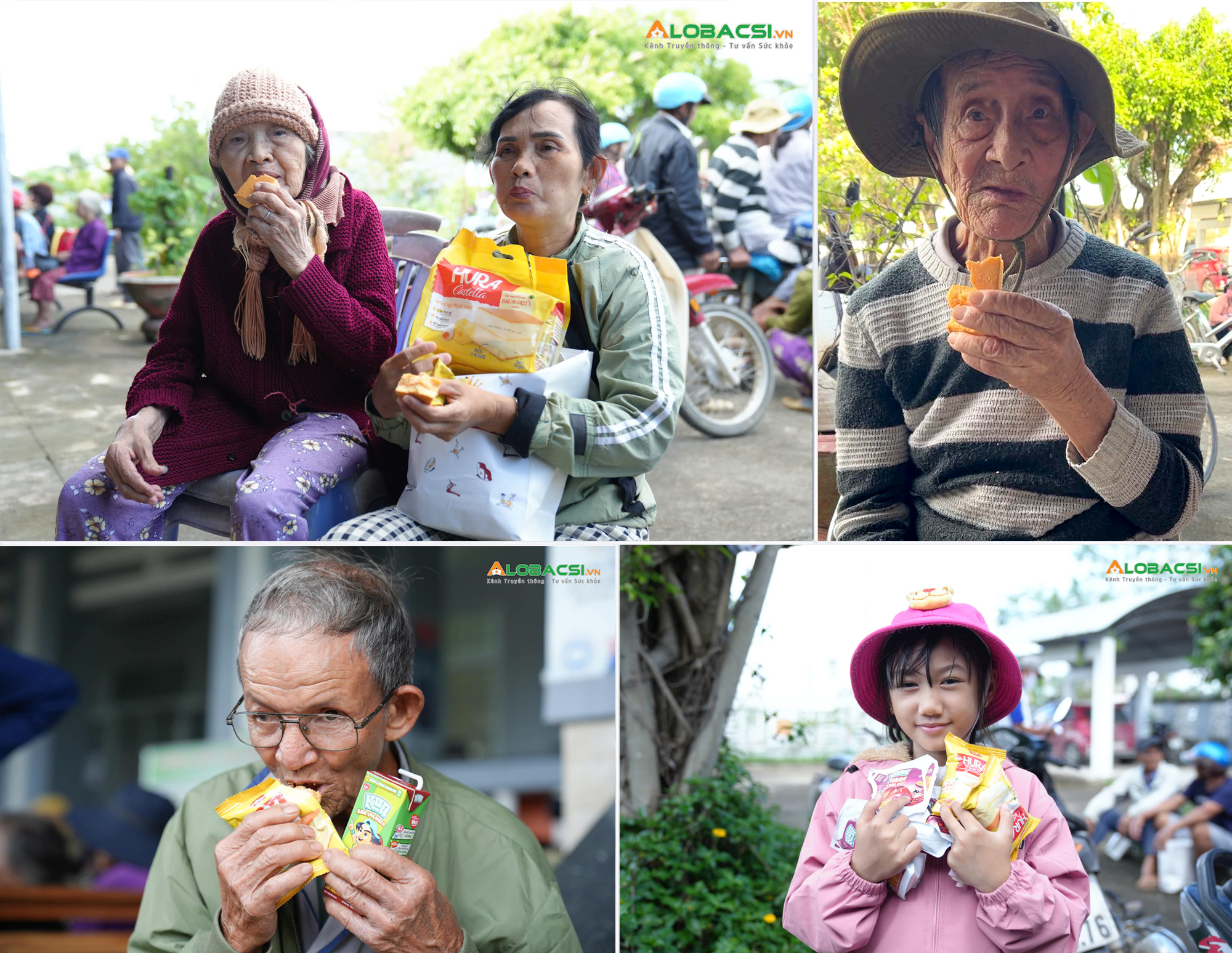 Được tặng bịch bánh Hura thơm mềm, ông cụ hơn 90 tuổi, cắn bỏm bẻm ra chiều vừa miệng. Ông run run, “bánh ở đâu mà ngon qué”. Ông ăn non nửa cái, rồi run run gói cất phần còn lại vào túi áo cũ sờn, “để dành cho bà nhà 87 tuổi, bệnh liệt giường ở nhà”.