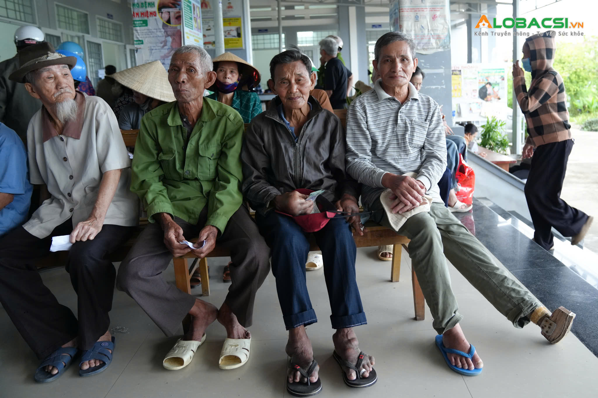 Một góc là bác gái mù, gầy gò, nghe đọc tên lại quờ quạng nắm tay tình nguyện viên đưa vào phòng vào khám, góc kia là một bác trai với cái chân gỗ tự chế vừa được đo huyết áp, ngoài cổng ông già 1 chân gỗ cũng đang dắt xe đạp hoà vào đám đông đang chờ được khám bệnh.