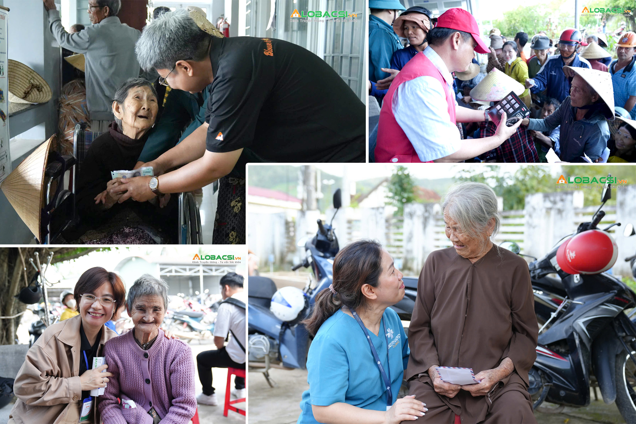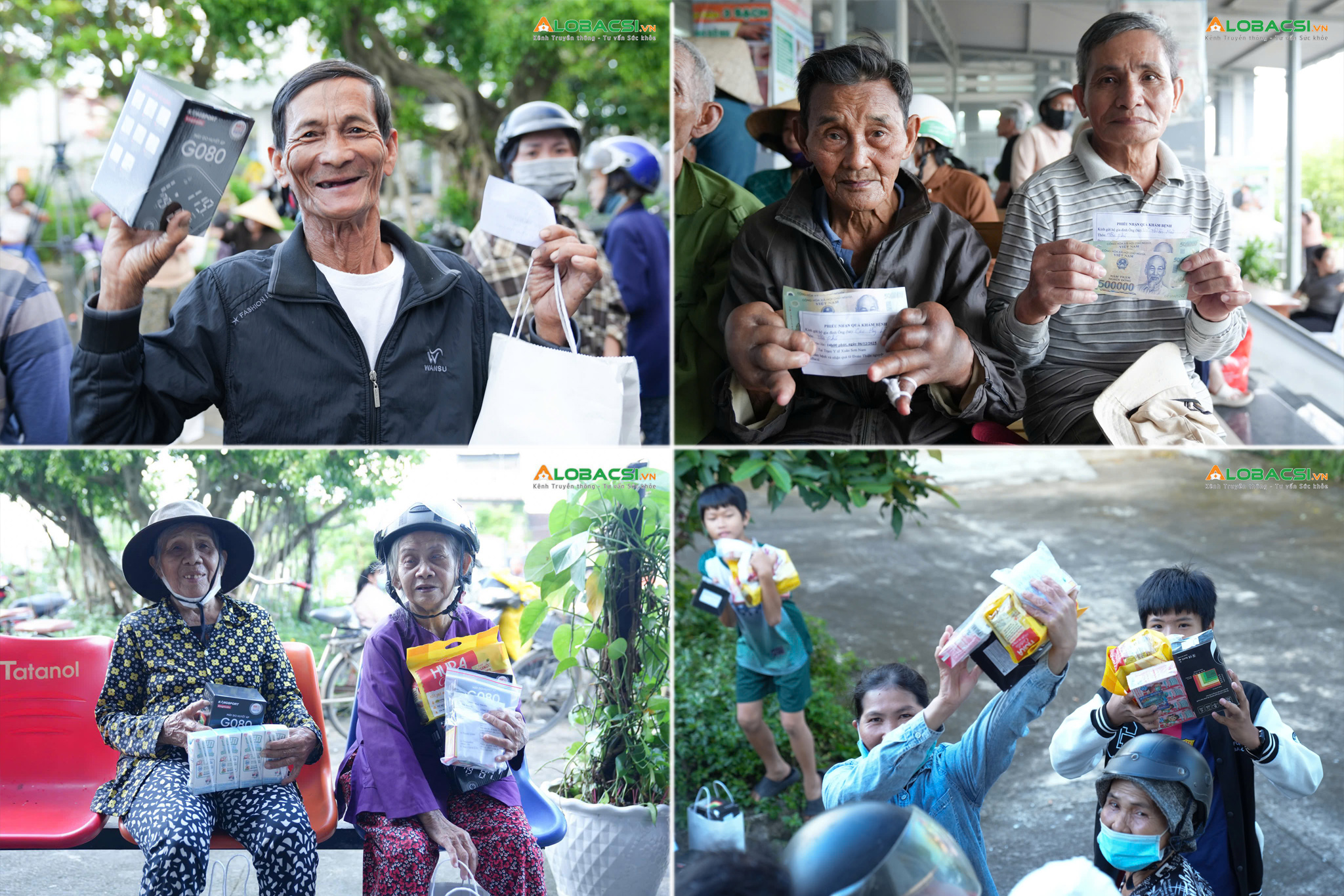 Đoàn AloBacsi không ai bảo ai, cố gắng khám chậm, kiên nhẫn lắng nghe, ân cần dặn dò, tư vấn kỹ lưỡng. Mỗi lời nói, mỗi toa thuốc chở cả tình yêu thương của đoàn y bác sĩ phương nam và mong muốn, chăm sóc tận tình cho bà con hồi phục sức khoẻ, sắp xếp lại cuộc sống.