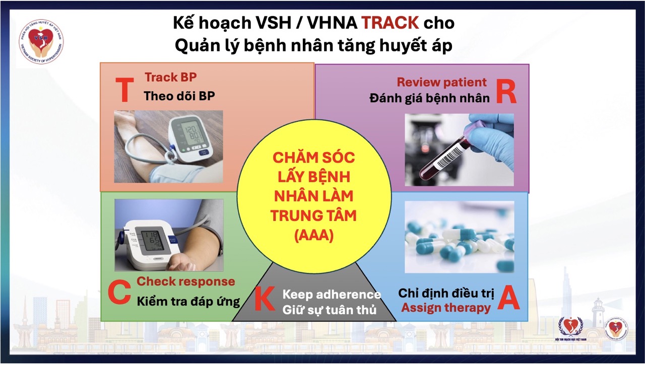 Thứ hai, ra mắt Kế hoạch đồng thuận chuyên gia 5TRACK, tài liệu hướng dẫn quản lý THA mới nhất với định hướng lấy bệnh nhân làm trung tâm, gồm 5 thành tố chiến lược được viết tắt theo chữ T-R-A-C-K. Phiên họp có sự tham gia của đại diện Bộ Y tế và các Sở Y tế nhằm thống nhất biện pháp triển khai trong hệ thống y tế.