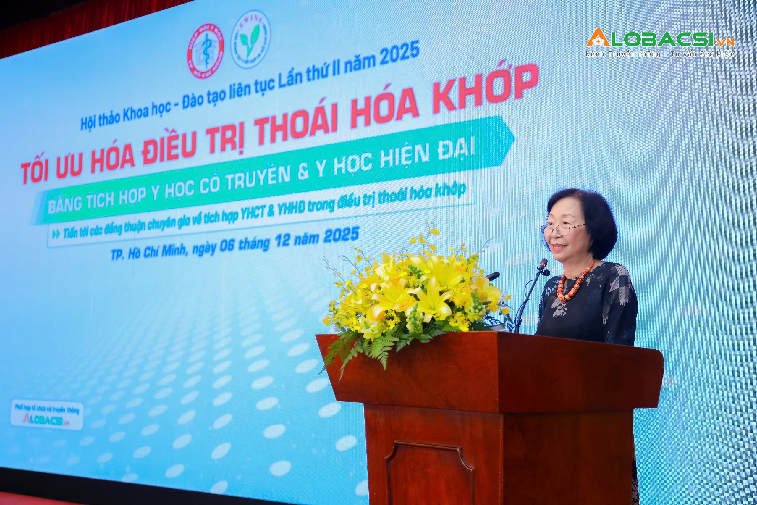 Bà nhìn lại hành trình 6 năm của Hội cùng nhiều thử thách, đặc biệt trong nghiên cứu. Từ hội thảo đầu tiên trong năm 2025 với kết quả nghiên cứu bước đầu về bệnh lý tiêu hóa trên, đến hội thảo hôm nay về thoái hóa khớp - nhóm bệnh có tần suất tăng nhanh và ngày càng trẻ hóa - đều là những nỗ lực nhằm xây dựng nền tảng khoa học cho YHCT.