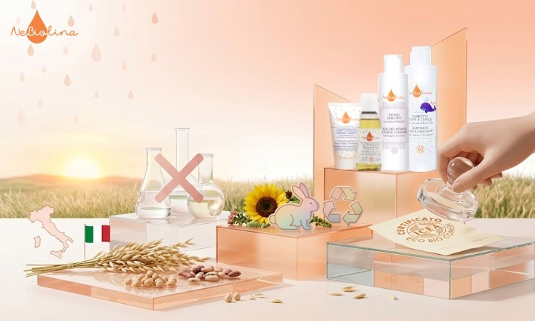 Toàn bộ sản phẩm của NeBiolina đều đạt chứng nhận ICEA Eco Bio Cosmetics, được in minh bạch trên bao bì để người tiêu dùng dễ dàng nhận diện. Sức mạnh cốt lõi của NeBiolina đến từ thành phần chiết xuất yến mạch hữu cơ, một nguyên liệu đã được nghiên cứu lâm sàng rộng rãi về khả năng dưỡng ẩm, làm dịu da, giảm viêm và hỗ trợ phục hồi hàng rào bảo vệ tự nhiên.