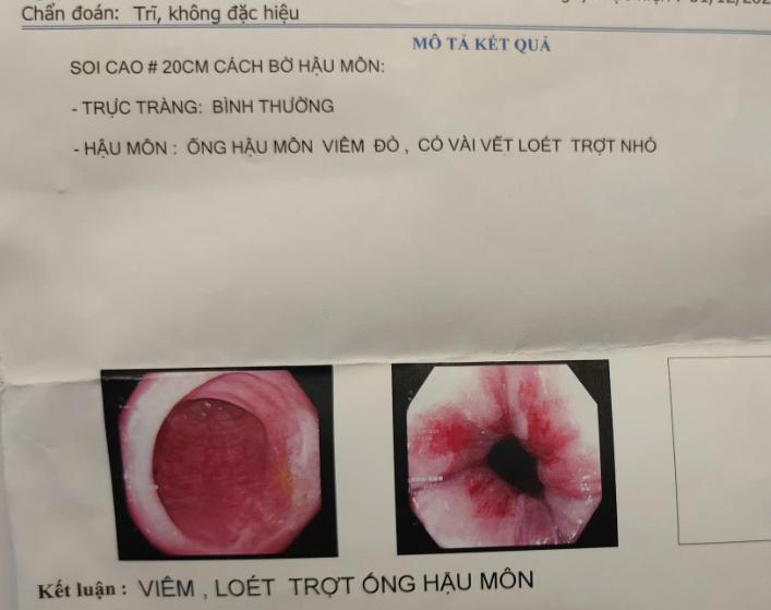 Thứ hai, đối với trường hợp viêm loét hậu môn kéo dài, điều trị thuốc không đáp ứng thì em cần phải nội soi toàn bộ đại trực tràng chứ không chỉ nội soi trực tràng mà thôi, để xem dọc theo ống đại tràng có các vị trí bị viêm loét tương tự hay không, nhằm tầm soát bệnh viêm loét đại trực tràng, bệnh này phải dùng loại thuốc đặc trị riêng.