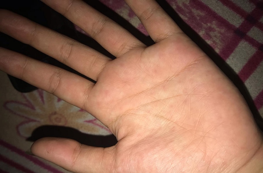 Hình ảnh em gửi về gợi ý tình trạng viêm da tiếp xúc phân biệt với tổ đĩa bàn tay giai đoạn sớm. Em nên khám chuyên khoa da liễu khi cảm giác ngứa xảy đến, bác sĩ quan sát trực tiếp tình trạng da lòng bàn tay của em nói riêng và đánh giá tổng trạng nói chung, xét nghiệm máu kiểm tra thêm (như kiểm tra chức năng gan, thận, nhiễm giun sán…), từ đó sẽ có kết luận về bệnh chính xác kèm hướng điều trị tương ứng, em nhé.