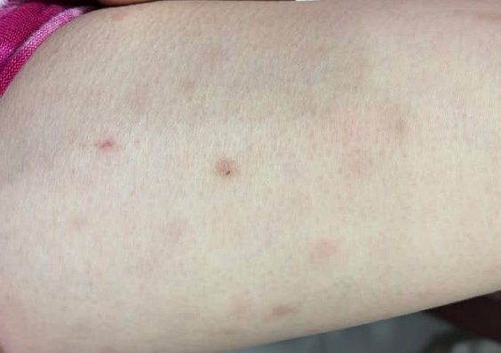 Khả năng thứ ba là côn trùng đốt cũ để lại vết thâm, thỉnh thoảng ngứa lại khi da khô hoặc sau tắm, nhưng hiện tại không còn viêm cấp.