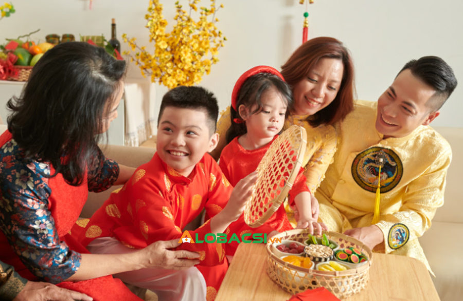 Sau khi nhận bánh, bạn có thể nhanh chóng chuyển chủ đề: “Cô năm nay chuẩn bị Tết nhìn hoành tráng quá, nhà mình đông đủ ghê!”