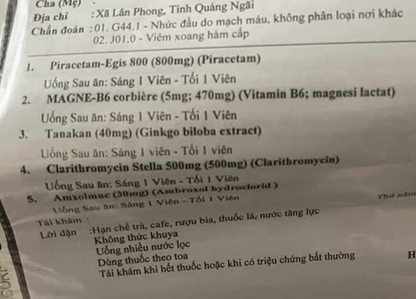 Một điểm quan trọng là toa thuốc hiện tại chủ yếu giúp giảm triệu chứng và cải thiện tuần hoàn não, còn viêm xoang thường cần thời gian dài hơn 7 ngày mới hồi phục hoàn toàn. Vì vậy sau 1 tuần vẫn còn đau đầu chưa thể xem là điều trị thất bại.