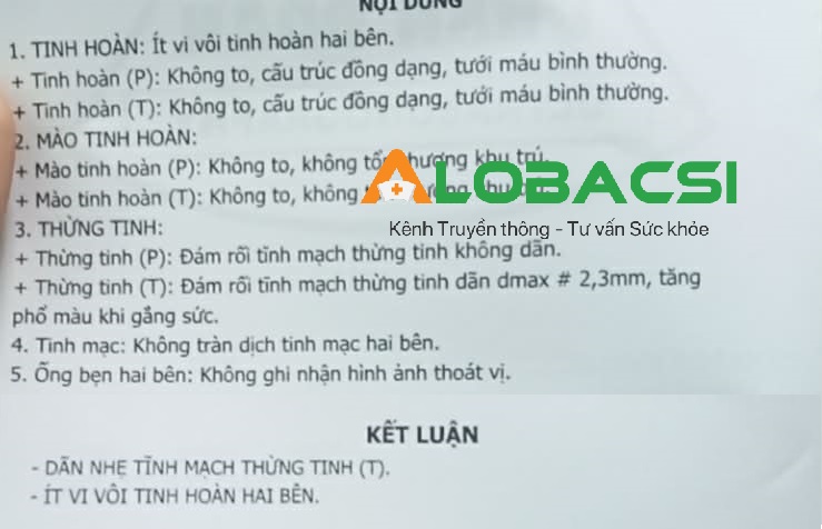 Em bị giãn tĩnh mạch thừng tinh nhẹ 2.3mm, có tăng phổ màu khi gắng sức, còn lại tưới máu đồ thì vẫn bình thường.