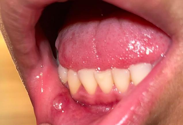 Miệng em như này là bị cắn phải má rồi sưng hay em bị sùi mào gà, thưa bác sĩ?