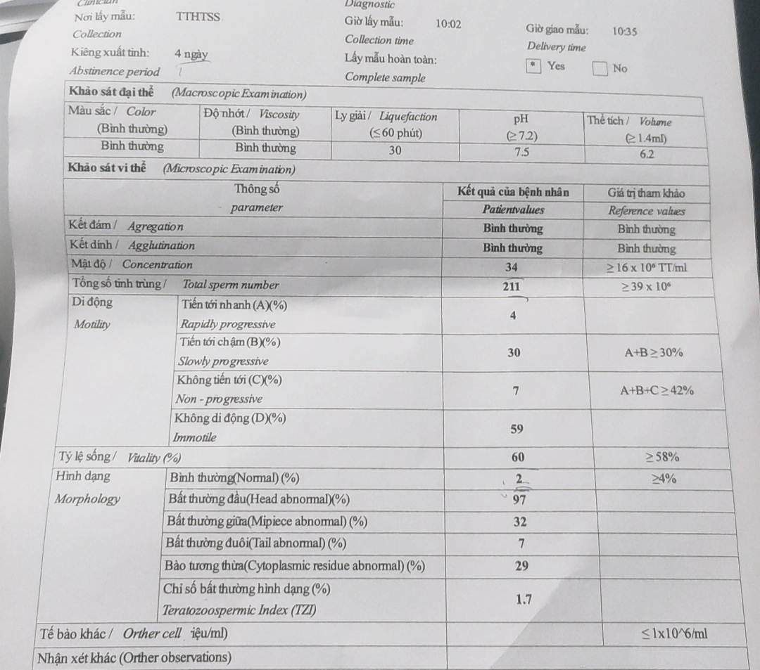 Nhờ bác sĩ tư vấn kết quả xét nghiệm tinh dịch đồ