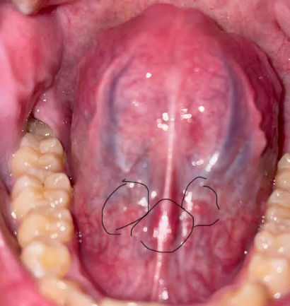 Hình chụp của em khá mờ lại có bóng nước bọt, và cũng không bộc lộ được tốt khẩu trường thành sau họng, do đó bác sĩ không quan sát được những tổn thương dưới lưỡi (nếu có) và thành sau họng.