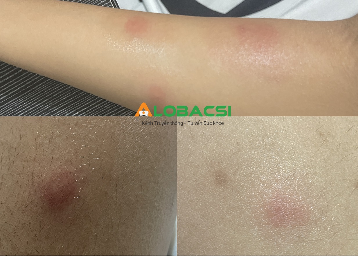 Qua hình ảnh bạn gửi và mô tả triệu chứng nổi các mảng đỏ rải rác ở tay chân, rất ngứa khi chạm vào, sau đó tự lặn và để lại vết thâm, tình trạng này không điển hình cho bệnh ghẻ.