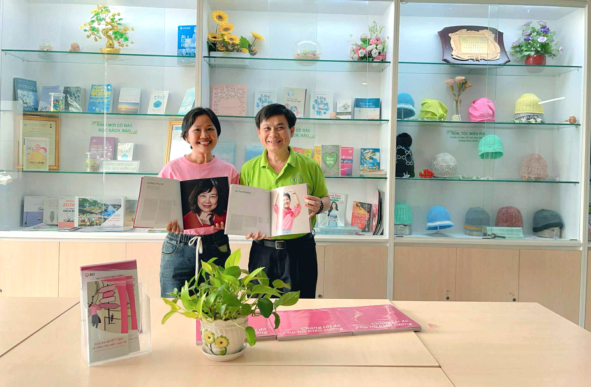 Tiếp nối cảm xúc ấy, ngày 20/10, chuỗi hoạt động “Sắc hồng kiên cường” tiếp tục lan tỏa. Mạng lưới Câu lạc bộ Phụ nữ Kiên cường đã tặng 20 cuốn sách Chúng tôi đó - Phụ nữ kiên cường cho Tủ sách của Phòng Công tác xã hội, đặt tại Trung tâm Ung bướu - Bệnh viện Chợ Rẫy (Khoa Tuyến Vú, Khu Xạ trị và Khoa Hóa xạ trị trong ngày).