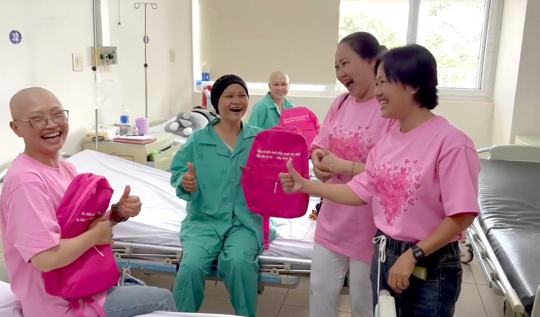 Cũng trong dịp này, chị Võ Yến Bình - một “cựu chiến binh K” - đã gửi tặng 67 chiếc balo hồng đến các bệnh nhân tại Khoa Tuyến vú và Khoa Điều trị giảm nhẹ.