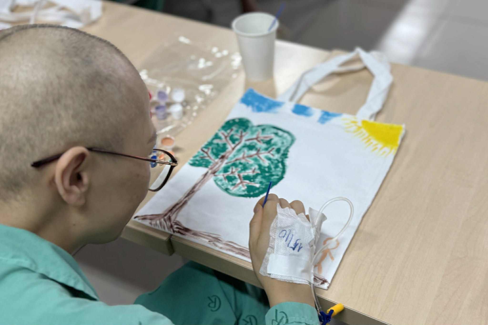 Có người lần đầu cầm cọ, có người vẫn còn ống dẫn lưu sau phẫu thuật nhưng vẫn say sưa với từng gam màu. Mỗi nét vẽ không chỉ là màu sắc, mà là niềm vui, sự sống và niềm tin giữa những ngày điều trị vất vả.