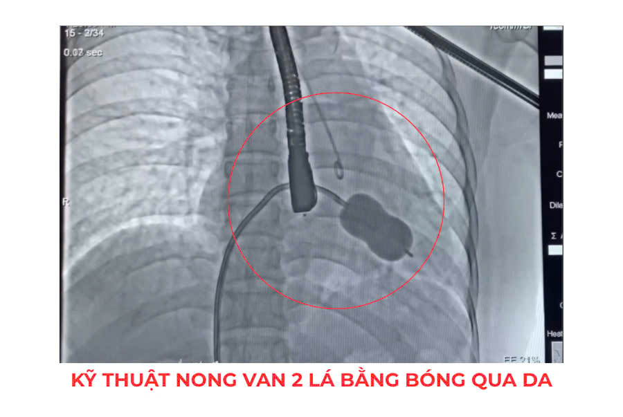 Ca thủ thuật được thực hiện trong phòng can thiệp tim mạch (Cathlab). Bác sĩ đưa ống thông qua đường tĩnh mạch đùi, xuyên vách liên nhĩ đến vị trí van hai lá bị hẹp, sau đó bơm căng bóng để tách mép van, khôi phục dòng máu lưu thông. Quá trình diễn ra an toàn, chỉ số huyết động cải thiện rõ rệt ngay sau can thiệp. Bệnh nhân được theo dõi sau thủ thuật và xuất viện chỉ sau một ngày, tình trạng ổn định, hô hấp và tuần hoàn bình thường.