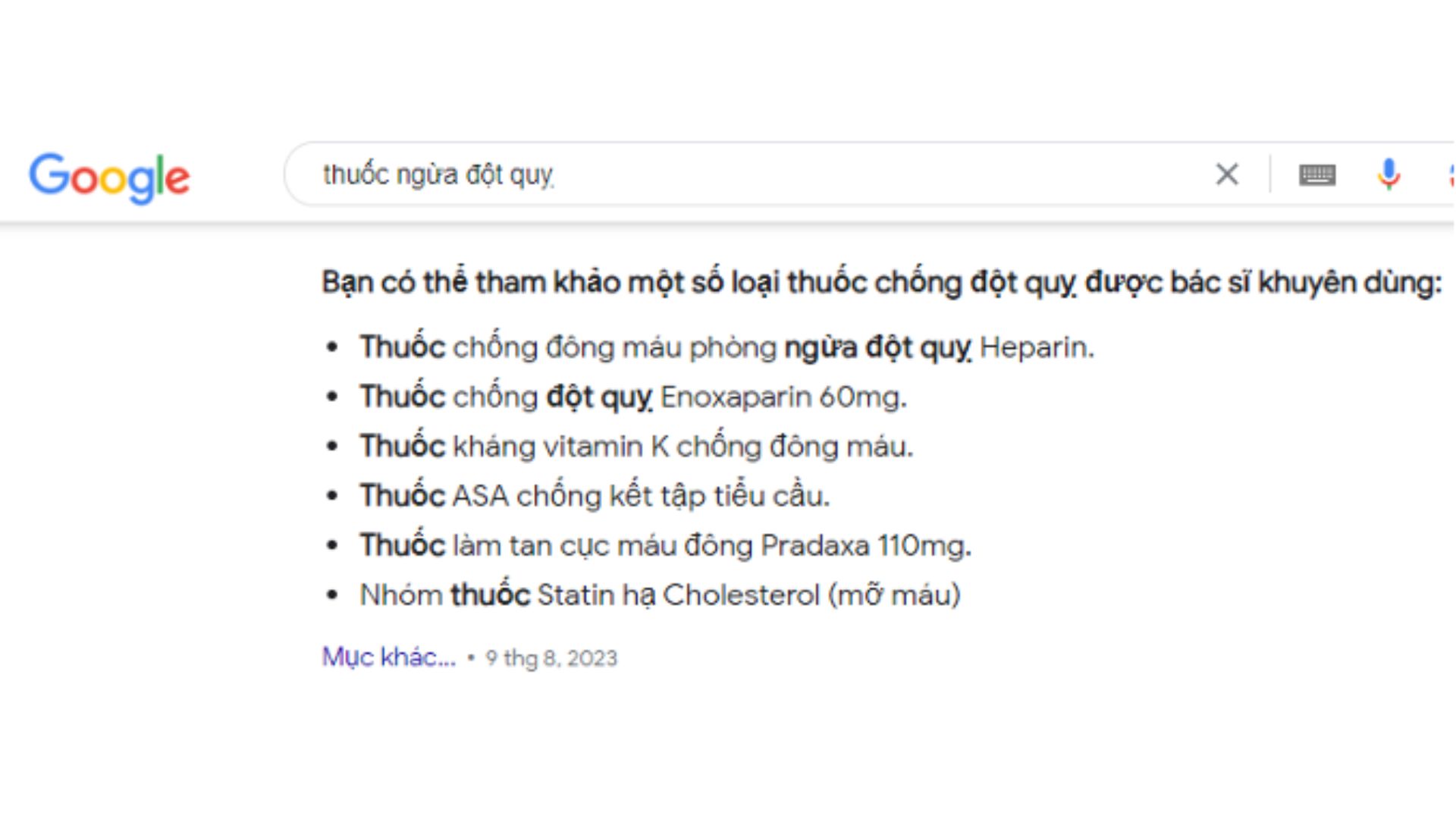 Khi tra Google cụm từ “thuốc ngừa đột quỵ”, ngoài các thực phẩm chức năng thì có rất nhiều kết quả như vitamin K chống đông máu, ASA chống tập kết tiểu cầu, thuốc làm tan cục máu đông, thuốc hạ mỡ máu... Những thuốc này có loại nào người dân tự mua được không ạ?