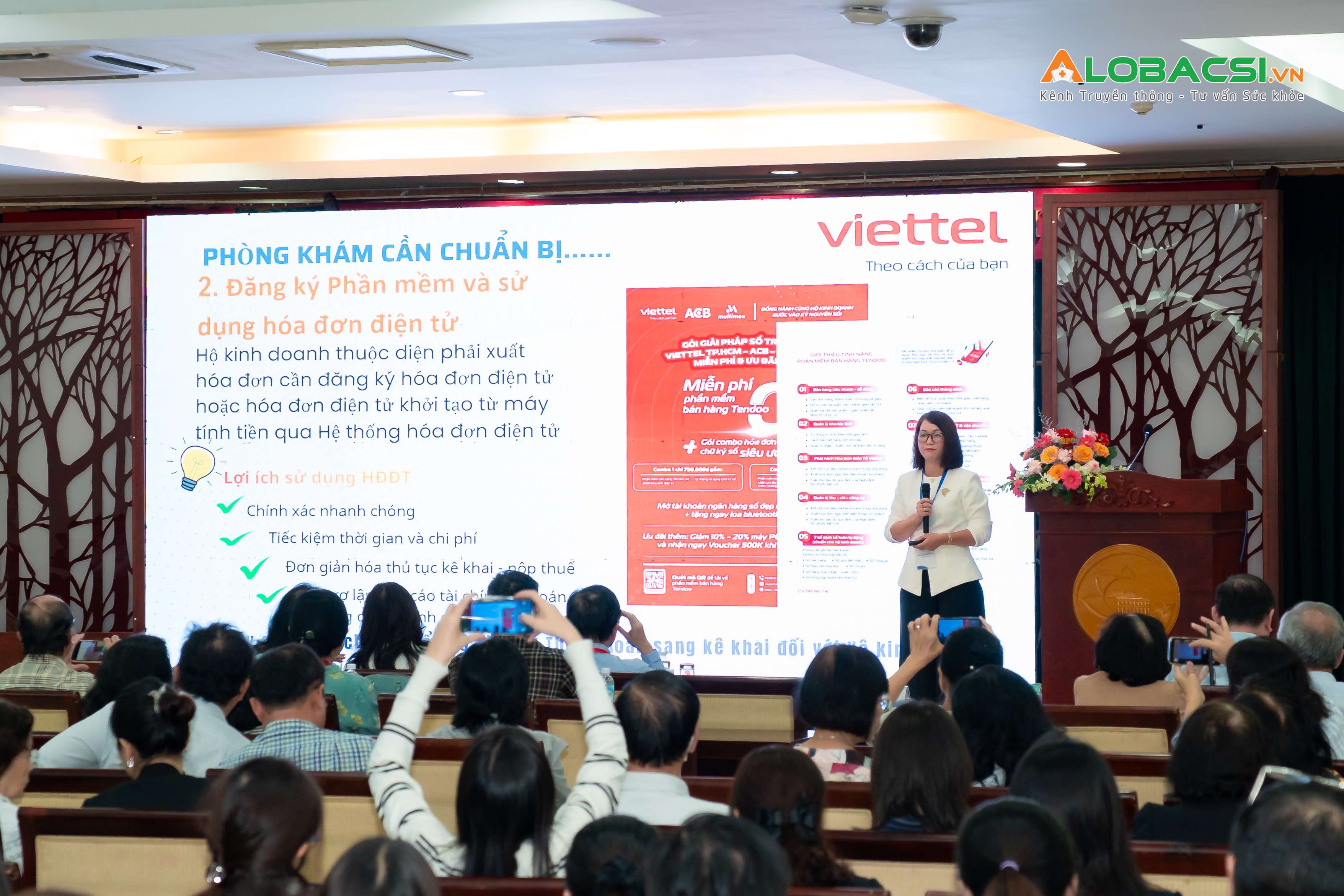 Sự kiện cũng dành nhiều thời lượng để các nhóm chuyên gia từ Cục Thuế, Viettel TPHCM và ngân hàng trình bày ba nội dung trọng tâm: chính sách thuế mới, giải pháp phần mềm hỗ trợ chuyển đổi, và các giải pháp tài chính cho phòng khám. Không khí đối thoại sôi nổi cho thấy vấn đề thuế đang là mối quan tâm lớn của các phòng khám tư nhân trong giai đoạn chuyển đổi.