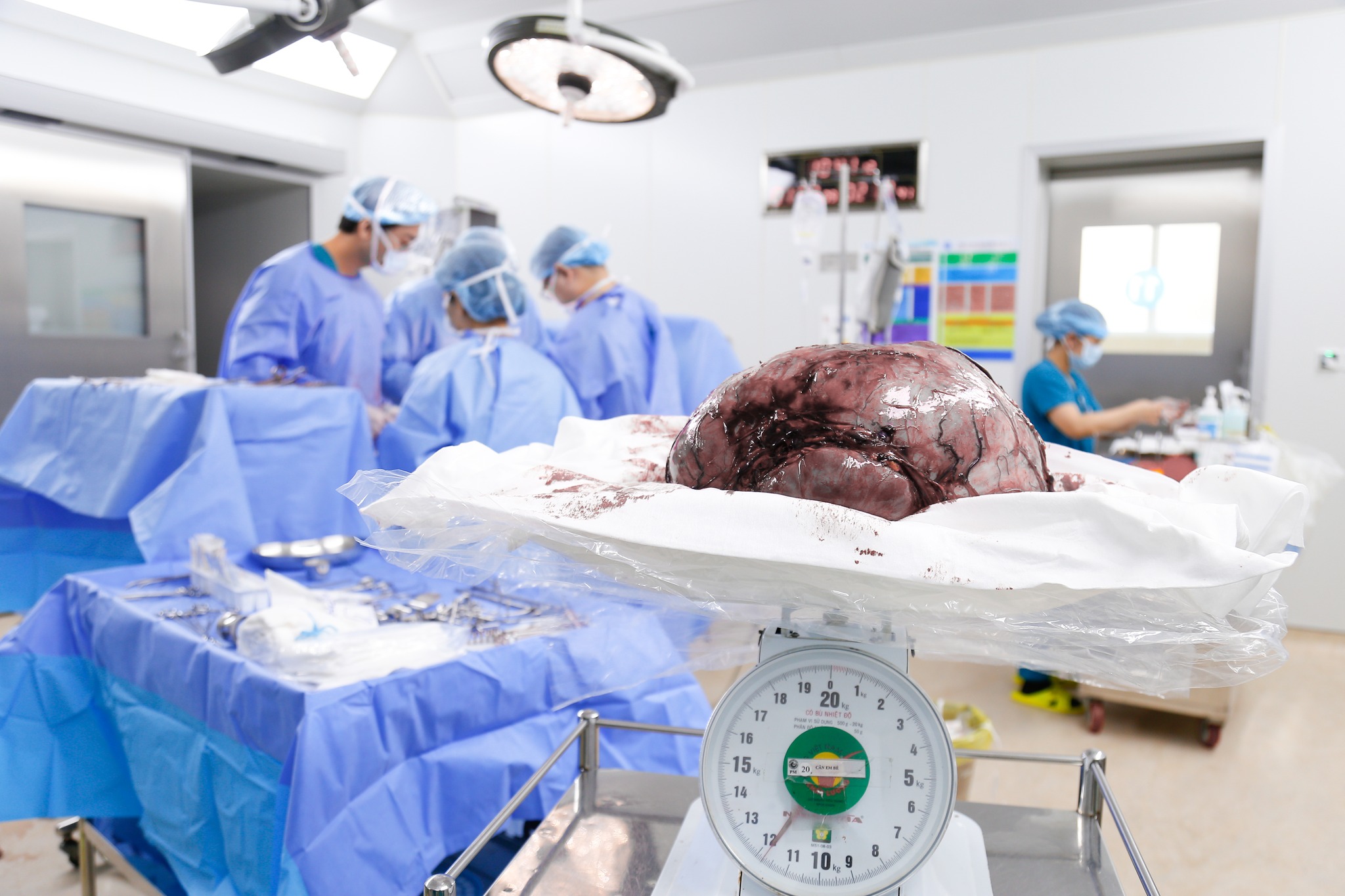 Ê-kíp bác sĩ Bệnh viện Từ Dũ thực hiện ca bóc tách khối u cho bệnh nhânKhối u xơ tử cung “khổng lồ” gần 12kg, khiến nữ bệnh nhân đối mặt nguy cơ thuyên tắc phổi và biến chứng tim mạch nghiêm trọng