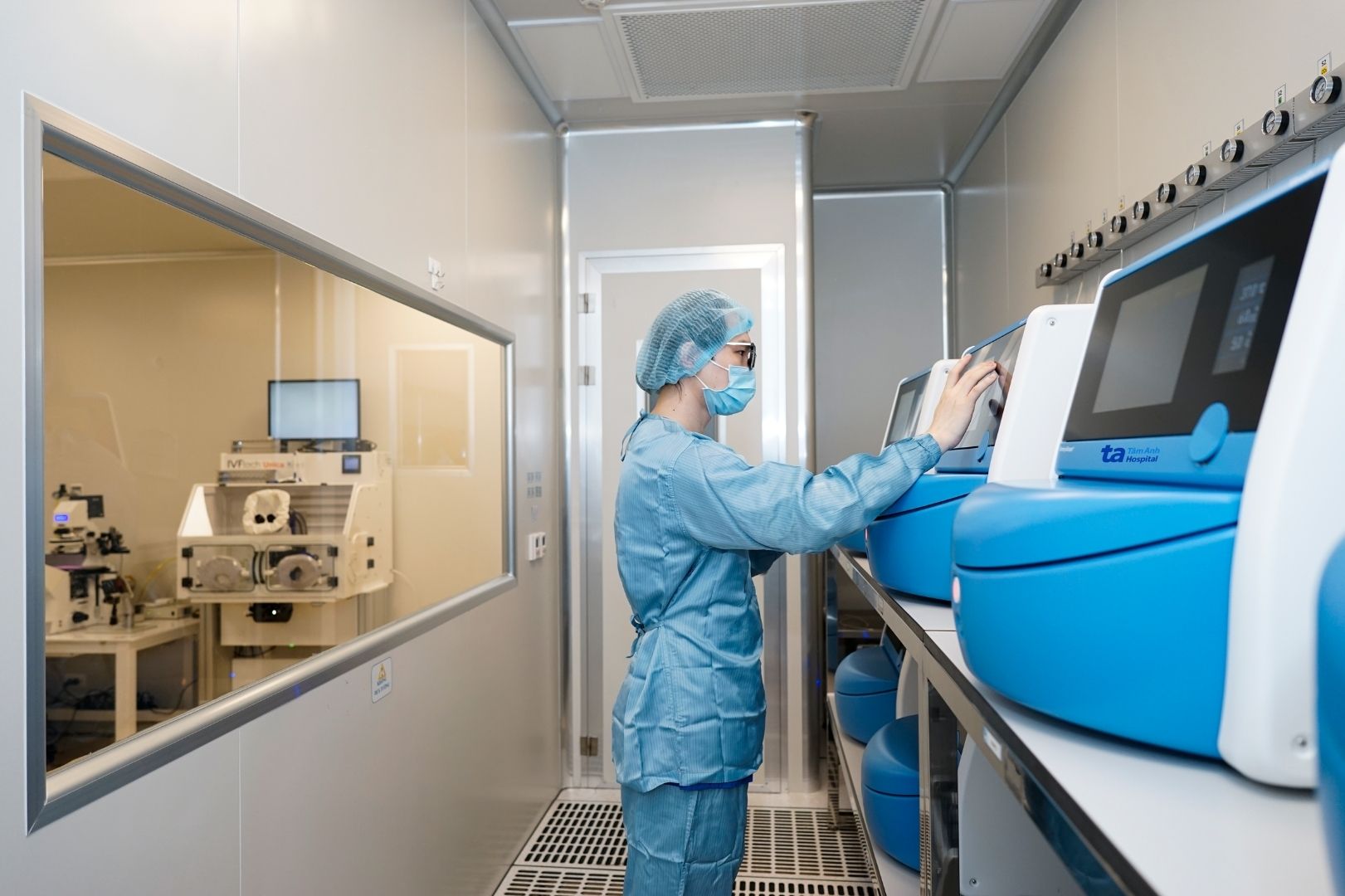 Hệ thống này được thiết kế gồm phòng nuôi cấy phôi chuẩn ISO 5 nằm bên trong phòng thao tác giao tử và phôi đạt chuẩn ISO 6. Sự tách biệt hoàn hảo này giúp kiểm soát tốt môi trường, ổn định các yếu tố ảnh hưởng bên ngoài, đảm bảo phôi và giao tử phát triển trong điều kiện tối ưu. Đây là thiết kế lab phôi học độc đáo đầu tiên của Việt Nam xác lập kỷ lục châu Á.