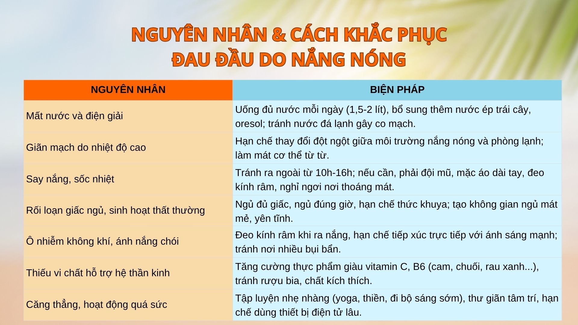 Biện pháp giảm đau đầu và bảo vệ sức khỏe mùa nắng nóng