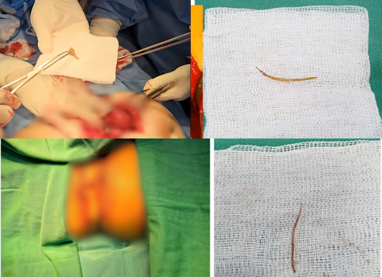 Trường hợp thứ ba là bệnh nhân N.V.L. (43 tuổi, TX Quảng Yên), xuất hiện khối cạnh hậu môn đau nhiều trong một tuần. CT phát hiện ổ dịch khí và dị vật xuyên thành ống hậu môn gây áp xe. Kíp mổ đã làm sạch ổ áp xe và lấy dị vật giống xương cá dài khoảng 3cm.