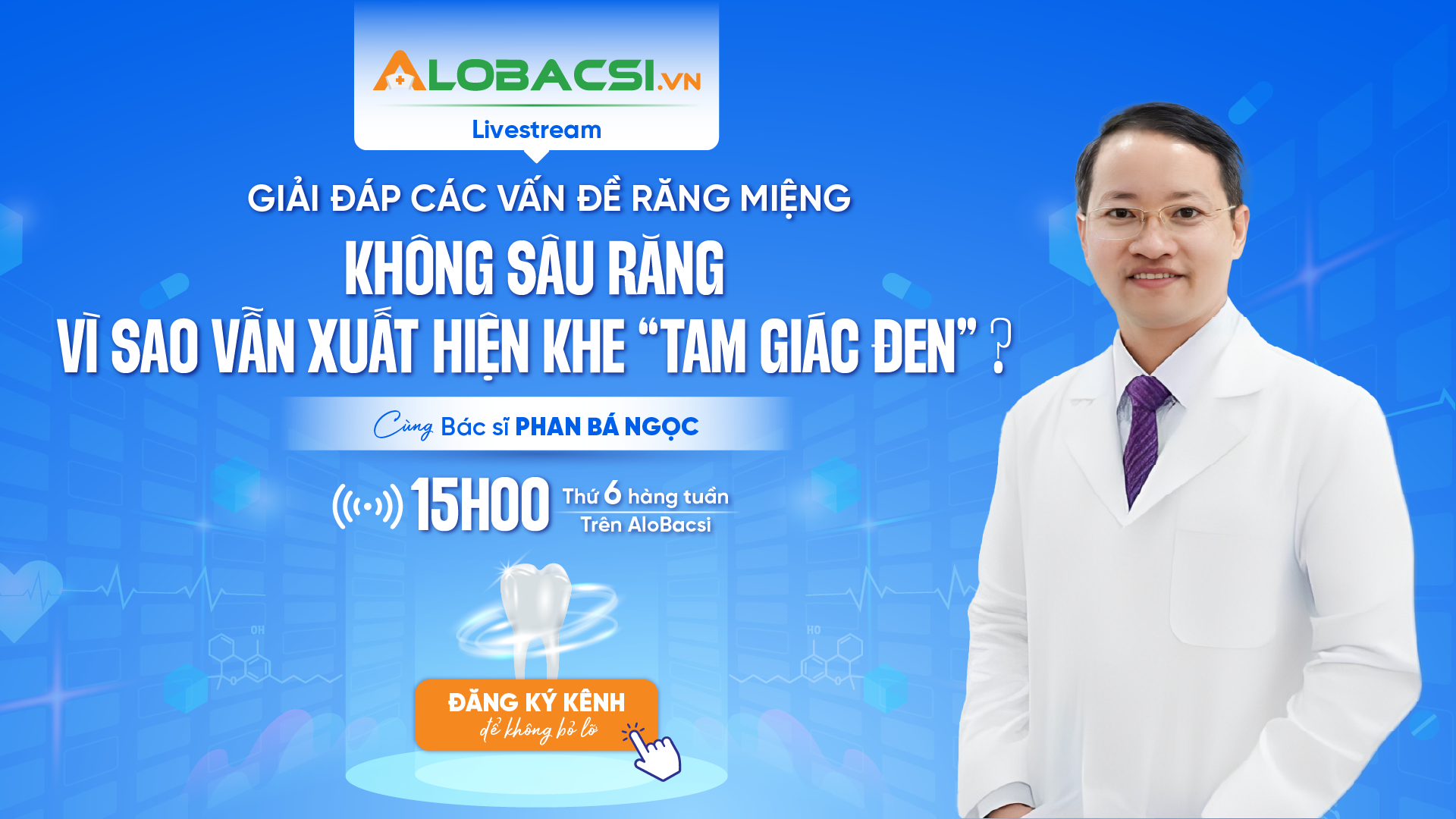 Bên cạnh nội dung chia sẻ chính, BS.CK1 Phan Bá Ngọc sẽ dành thời gian trả lời trực tiếp tất tần tật các câu hỏi của khán giả xoay quanh vấn đề sức khỏe răng miệng. Mời quý khán thính giả đón xem và đặt câu hỏi.