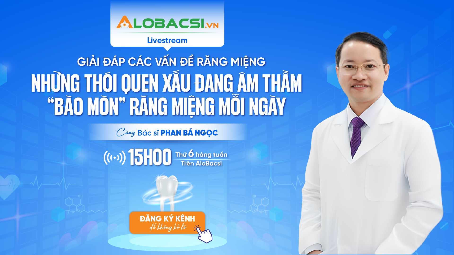 Những thắc mắc này sẽ được BS.CK1 Phan Bá Ngọc - Giám đốc Phòng khám Nha khoa Hạnh Phúc phân tích và giải đáp trong livestream giải đáp các vấn đề răng miệng kỳ 16, với chủ đề “Những thói quen xấu đang âm thầm "bào mòn" răng miệng mỗi ngày”, phát sóng lúc 15h00 chiều thứ 6, ngày 3/4/2026 trên các kênh AloBacsi (YouTube/ website/ fanpage/ Tiktok/ Zalo Video) và Fanpage Phòng khám Nha khoa Hạnh Phúc.