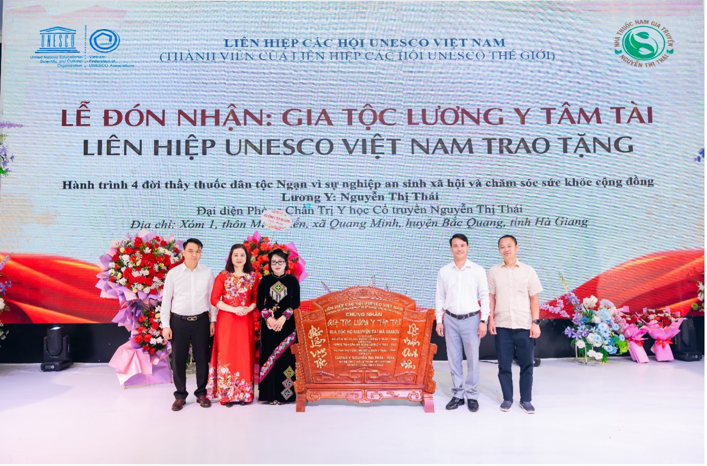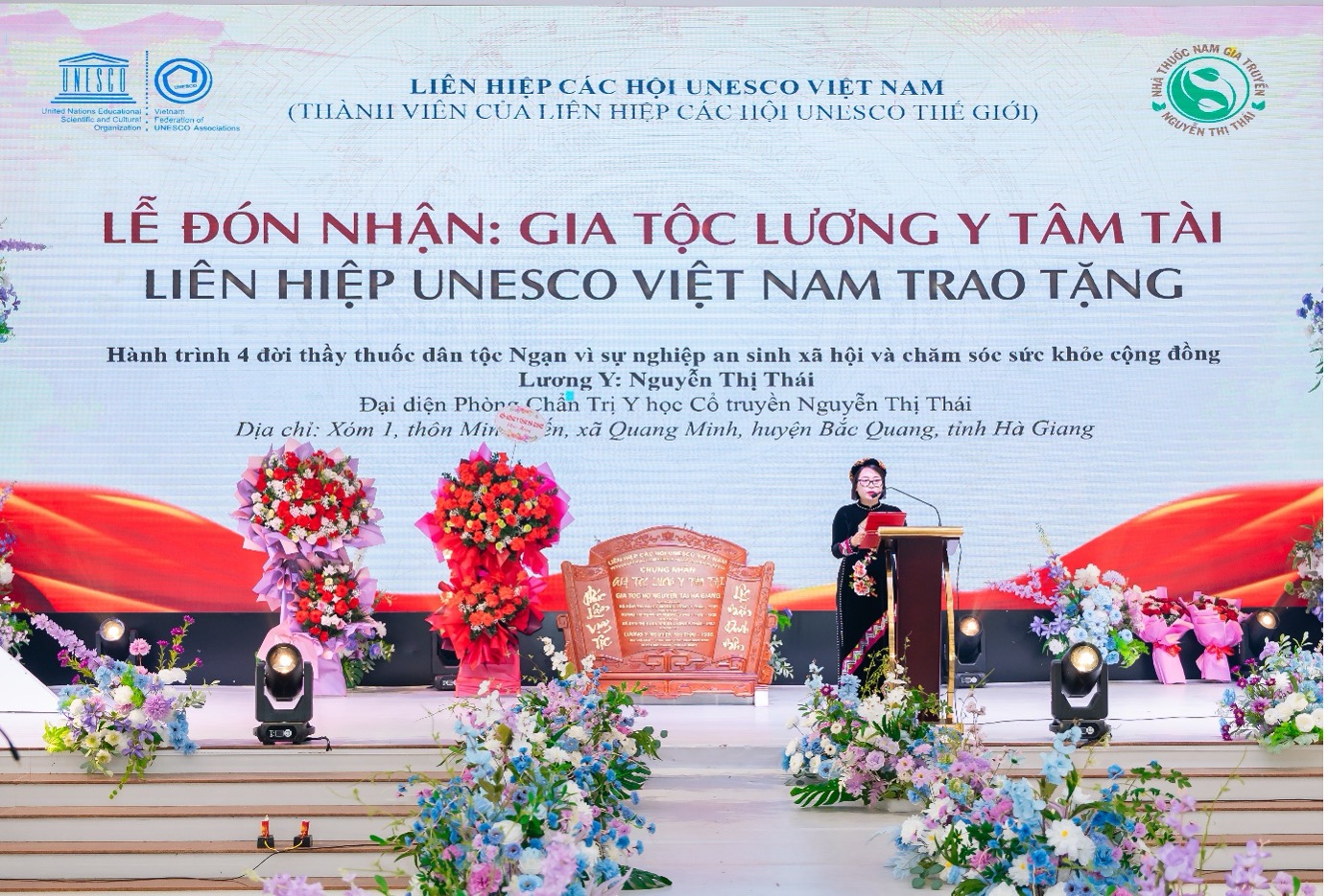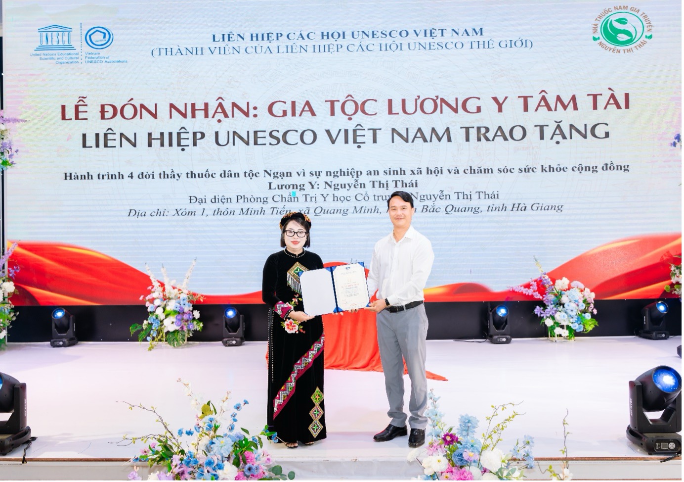 Trong hành trình gìn giữ và phát huy tinh hoa y học cổ truyền Việt Nam, Lương y Nguyễn Thị Thái - người sáng lập Nhà thuốc Nam Gia Truyền tại huyện Bắc Quang, tỉnh Hà Giang - đã để lại dấu ấn sâu sắc khi được Liên hiệp các Hội UNESCO Việt Nam trao tặng danh hiệu “Vì sự nghiệp an sinh xã hội và chăm sóc sức khỏe cộng đồng”. Đây không chỉ là sự ghi nhận dành cho một người thầy thuốc, mà còn là vinh danh cho một hành trình cống hiến không ngừng nghỉ vì cộng đồng.