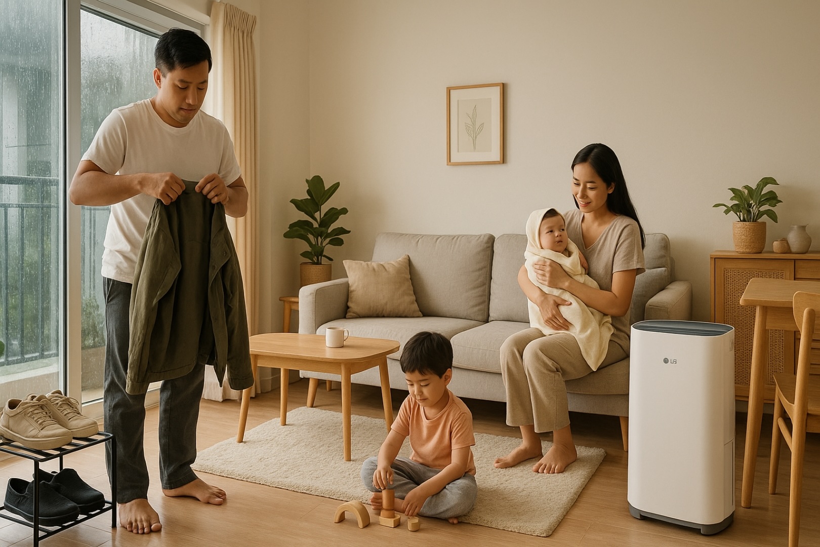 Em ở chung cư, căn 2 phòng ngủ, vợ em mới sinh em bé. Mấy nay TPHCM bắt đầu rục rịch mưa rồi ạ, nên nhà cứ có cảm giác ẩm thấp lắm. Em có thể làm gì để mấy mầm bệnh tránh xa con em ra ạ? Bé nhà em còn nhỏ thì chỉ ở nhà thôi nhưng em vẫn lo lắng lắm.