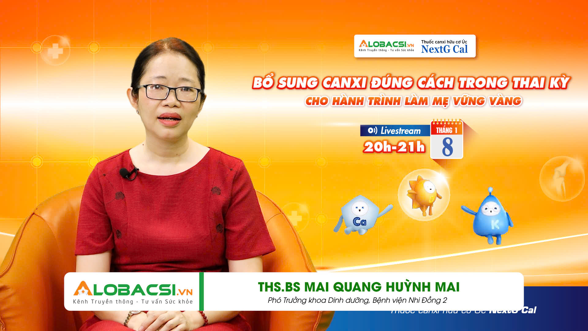 Trân trọng cảm ơn ThS.BS Mai Quang Huỳnh Mai và Thuốc Canxi Hữu Cơ Úc NextG-Cal đã đồng hành cùng AloBacsi thực hiện series “Canxi đúng chuẩn - Mẹ tròn năng lượng, con vững tương lai”, livestream giải mã các vấn đề xoay quanh việc bảo vệ xương khỏe cho người phụ nữ cũng như cách để canxi hấp thu tối ưu nhất.
