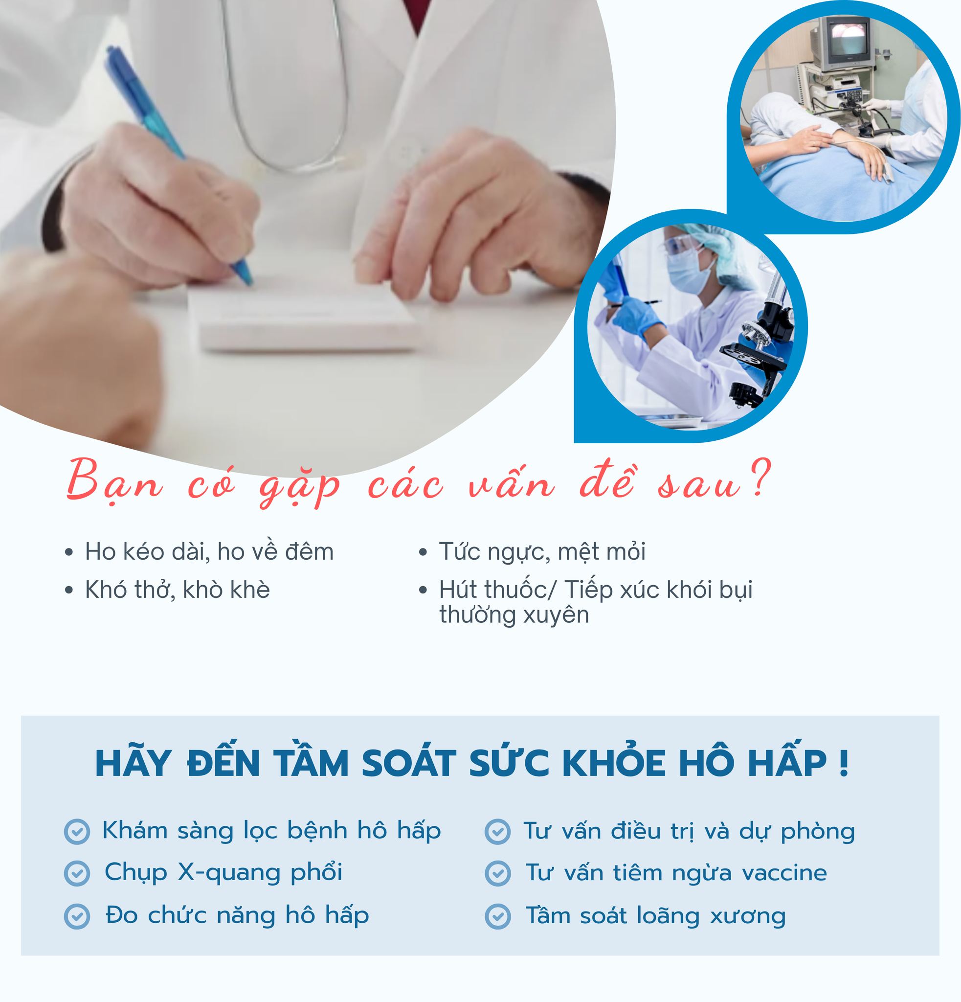 Người tham gia sẽ được thực hiện đầy đủ các dịch vụ gồm: khám sàng lọc bệnh hô hấp, chụp X-quang phổi, đo chức năng hô hấp, tư vấn điều trị và dự phòng. Bên cạnh đó, chương trình còn hỗ trợ tư vấn tiêm ngừa vaccine và tầm soát loãng xương, giúp tiếp cận chăm sóc sức khỏe toàn diện hơn.