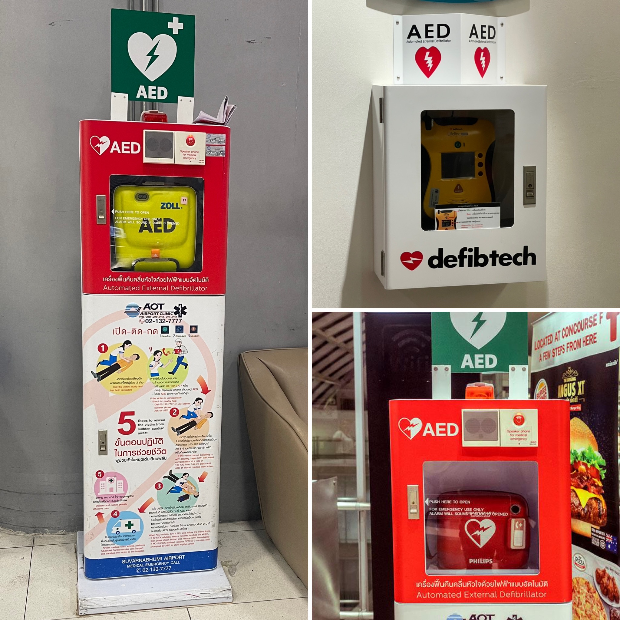Trong chuyến công tác đến Thái Lan tham dự một hội nghị quốc tế, TS.BS Trần Chí Cường đã chú ý đến một chi tiết nhỏ nhưng quan trọng: Sân bay Suvarnabhumi (Bangkok, Thái Lan) có bố trí những bộ máy khử rung tim ngoài tự động (AED) ở vị trí dễ nhìn thấy nhất.