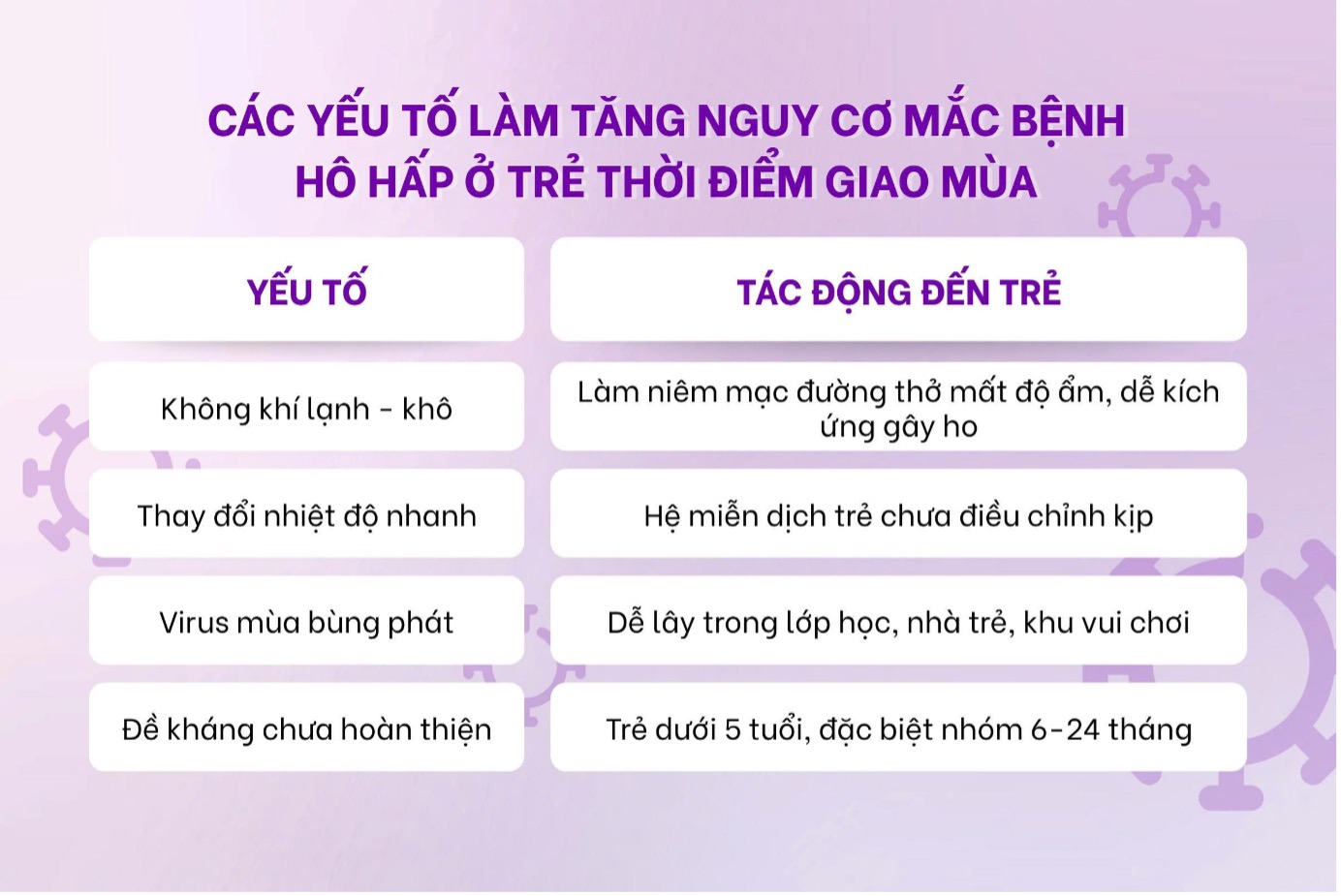 Trong các bệnh viêm đường hô hấp ở trẻ thời điểm giao mùa, nhóm nguyên nhân do virus chiếm tỷ lệ cao, đặc biệt là RSV, rhinovirus và cúm mùa.