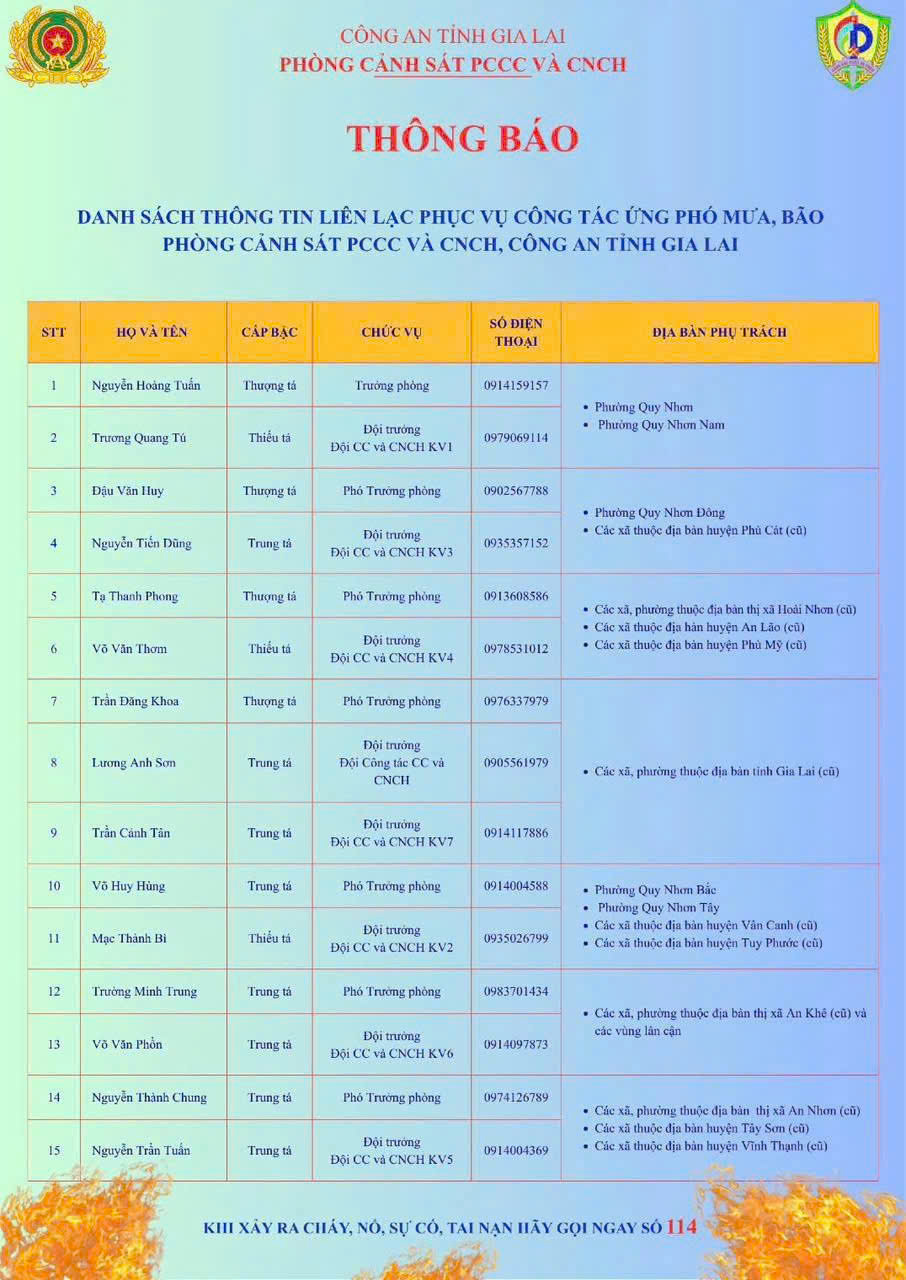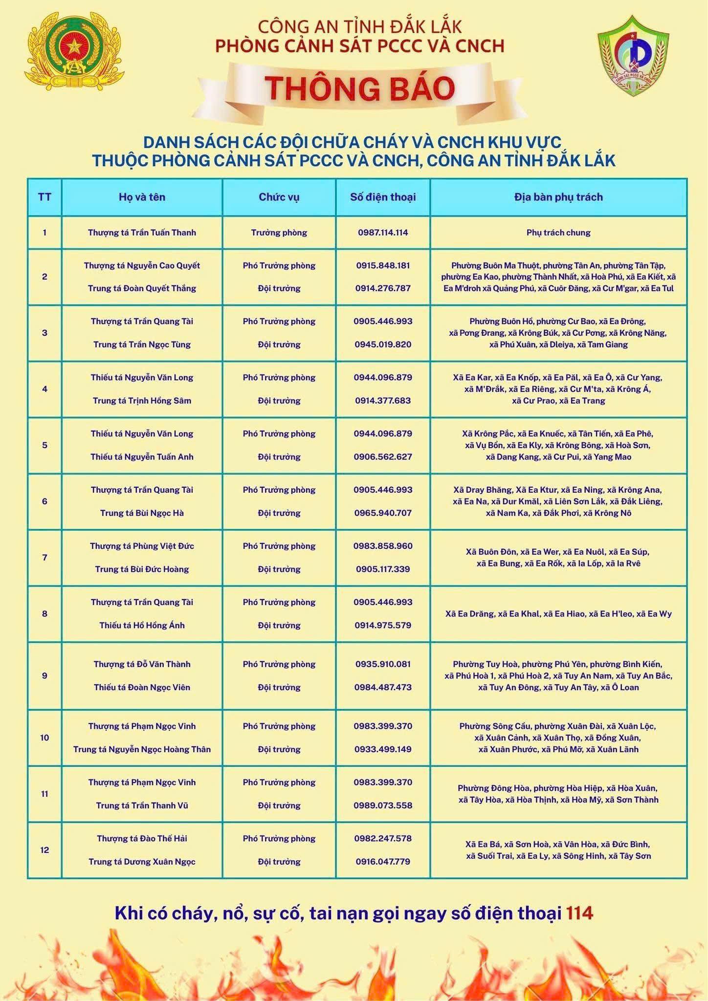 Dưới đây là một số thông tin liên lạc cứu hộ tại các tỉnh: Đắk Lắk (cũ), Phú Yên (cũ), Nha Trang, Gia Lai: