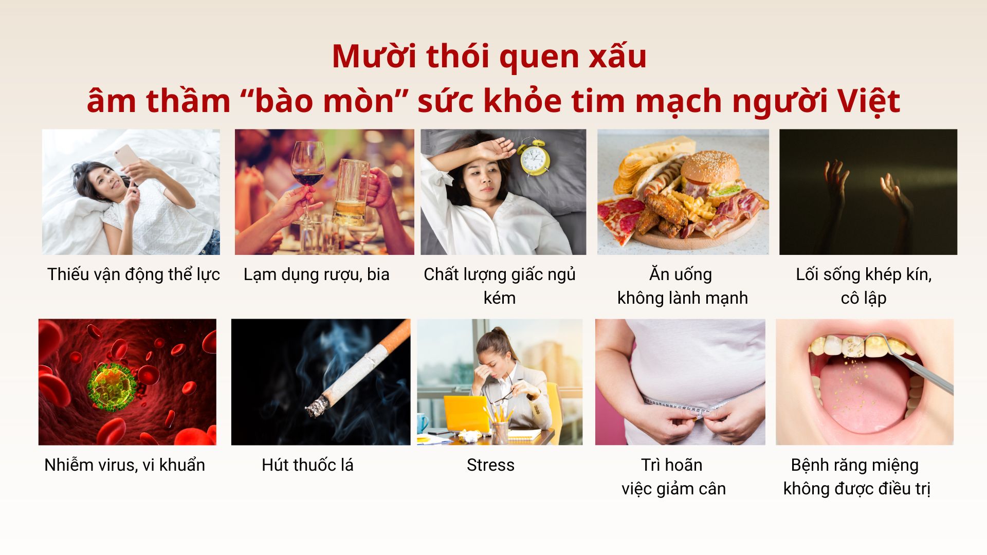 Bệnh tim mạch đang gia tăng nhanh chóng tại Việt Nam, thường diễn biến âm thầm và chỉ bộc lộ khi xảy ra biến cố nghiêm trọng như nhồi máu cơ tim, đột quỵ. Đằng sau những biến cố ấy, nhiều thói quen tưởng chừng vô hại lại chính là “thủ phạm” khiến trái tim bị bào mòn từng ngày.