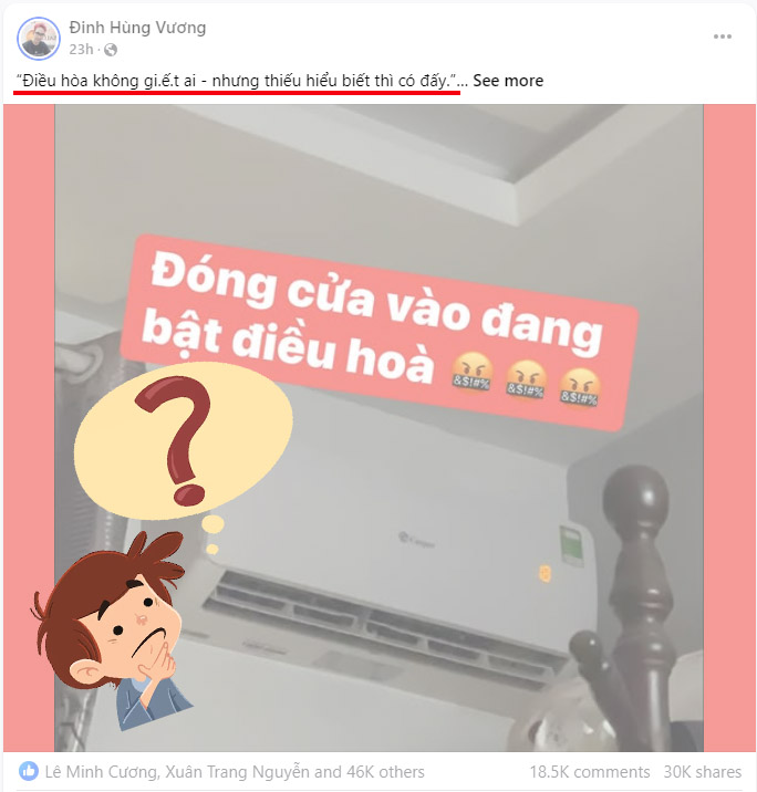 Một bài đăng mạng xã hội gần đây với tiêu đề gây chú ý “Điều hòa không giết ai – nhưng thiếu hiểu biết thì có đấy” đã thu hút nhiều tranh luận xoay quanh câu hỏi: “Ngủ trong phòng điều hòa đóng kín cửa có nguy hiểm không?”. Để làm rõ vấn đề này, TS Nguyễn Hồng Vũ - chuyên gia trong lĩnh vực y sinh học – đã đưa ra phân tích khoa học cụ thể, giúp cộng đồng hiểu đúng, hiểu đủ, tránh hoang mang không cần thiết.