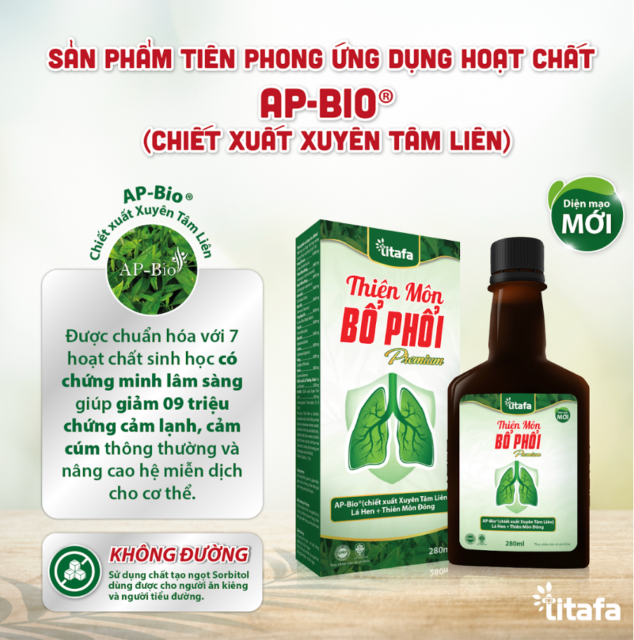 - AP‑Bio® – chiết xuất Xuyên tâm liên chuẩn hóa tỉ lệ 14:1